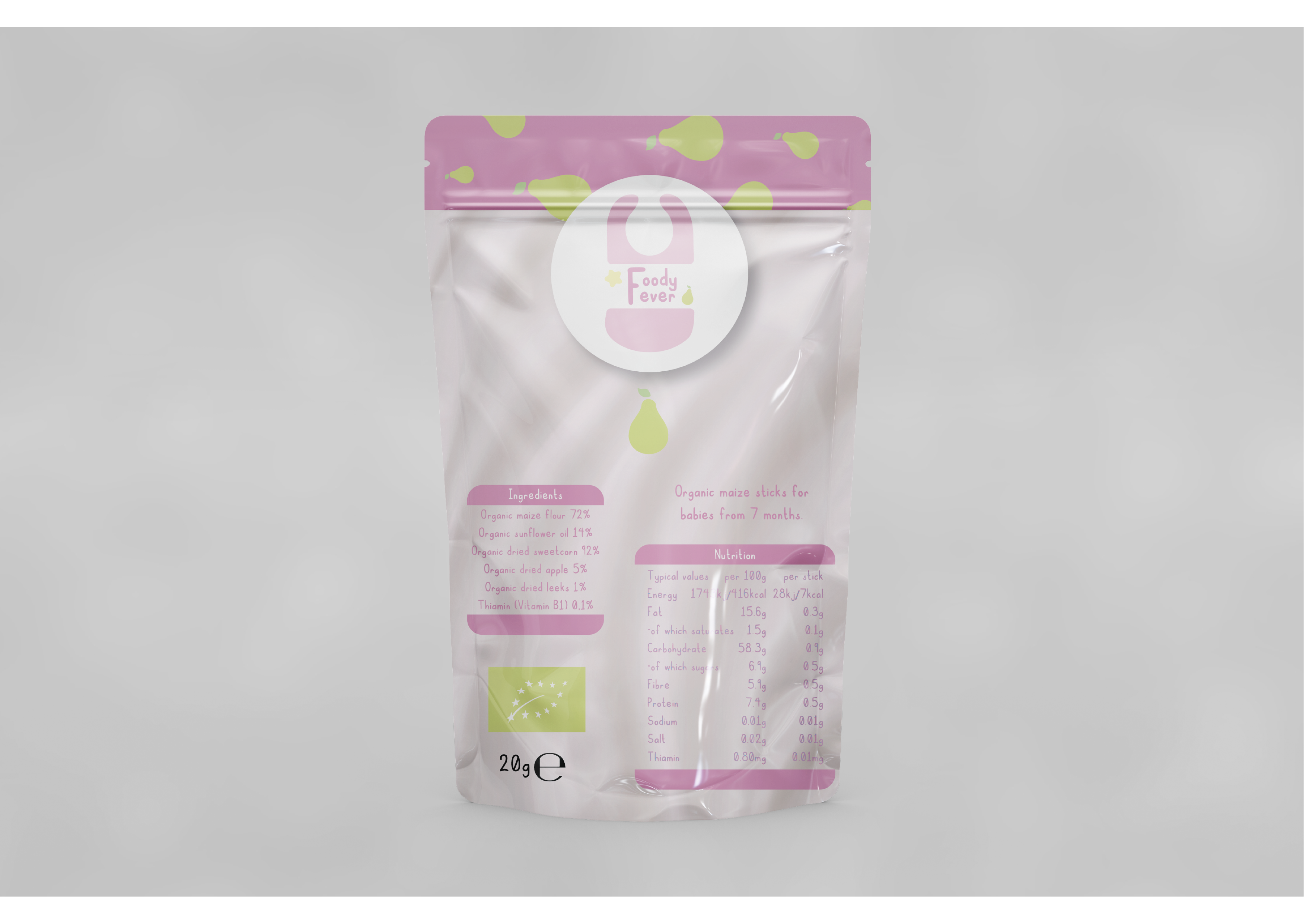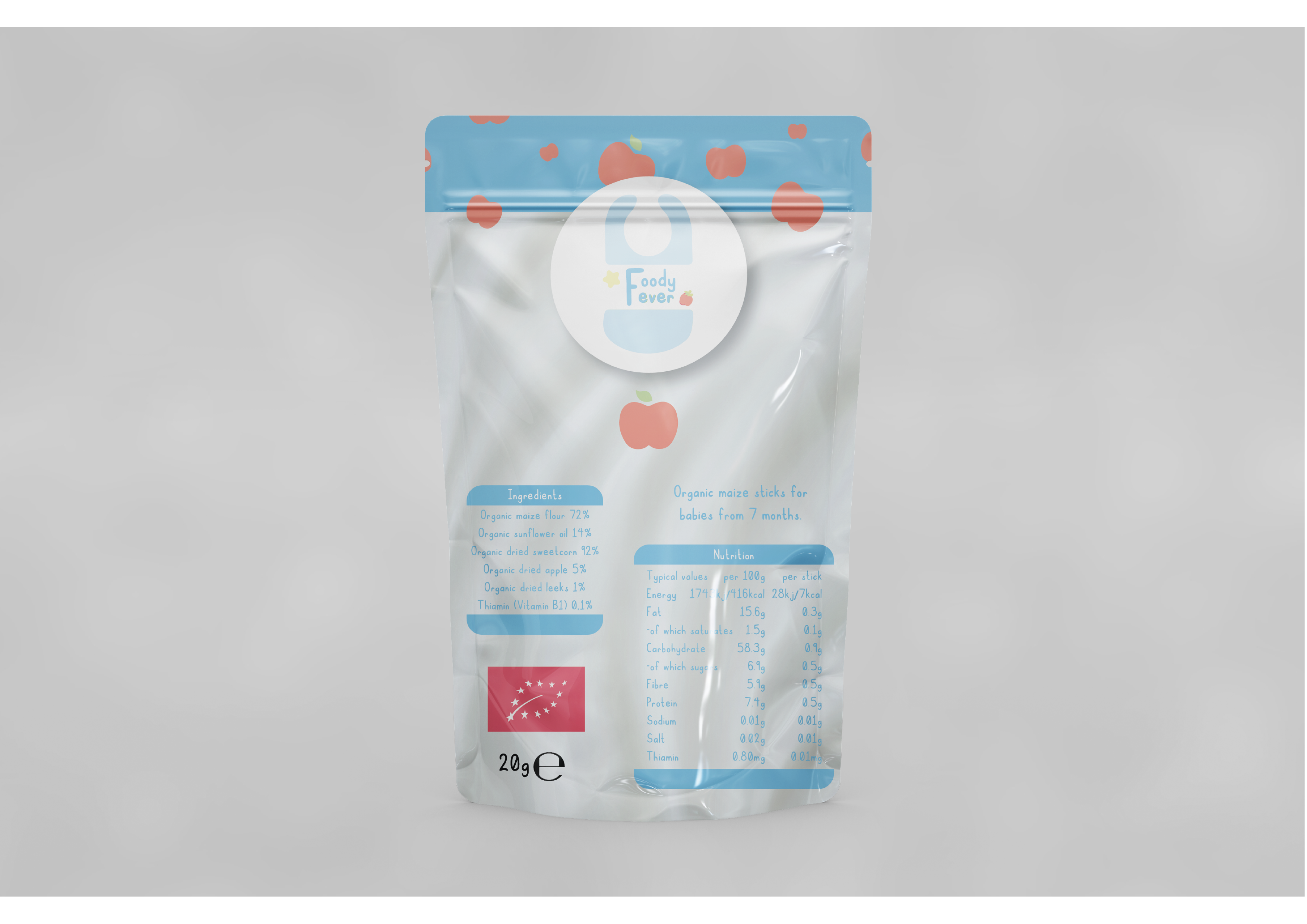 Voor dit project moesten wij een gezonde snack bedenken en de verpakking hiervan ontwerpen. Mijn idee was om gezonde baby mais sticks te maken. Hiervoor heb ik onderzoek gedaan naar logo’s van andere gezonde snacks, naar de doelgroep en wat voor snacks baby’s eten. Hierna heb ik verschillende logo’s ontworpen en heb ik hier één uit gekozen om mee verder te gaan. Ik heb 3 verschillende logo’s en verpakkingen van 3 verschillende smaken ontworpen en van deze mooie mock-ups gemaakt.